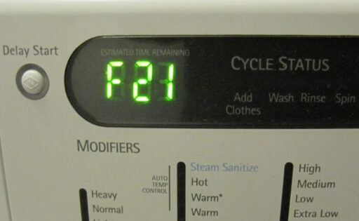 F21 错误代码通常与排水软管堵塞或阻塞、排水泵故障或排水过滤器堵塞有关。 这意味着您的洗衣机无法排水。