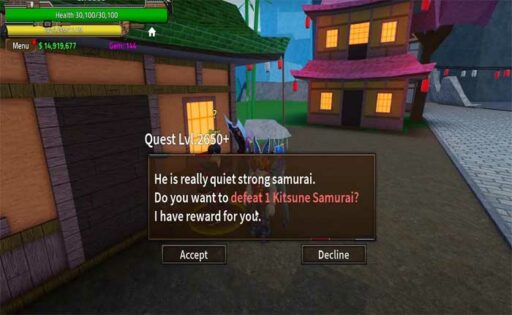 - 到达那里后,您需要找到 NPC 并接受击败 Kitsune Samurai 的任务。