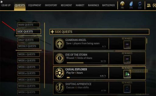 • 导航至 “任务” 菜单并选择 '支线任务。'
