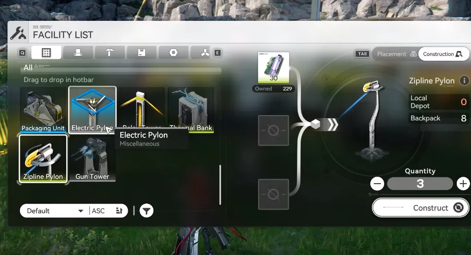1. 扩展您的电网:您必须将电源线从主电源辅助核心 (PAC) 或前哨站的子 PAC 连接到您所需的 Zipline 位置。通过放置中继塔并将它们连接成一条链来完成此操作,直到到达目标区域。