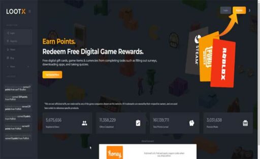 LootX 是一个合法网站,用户完成不同任务后会获得战利品积分。