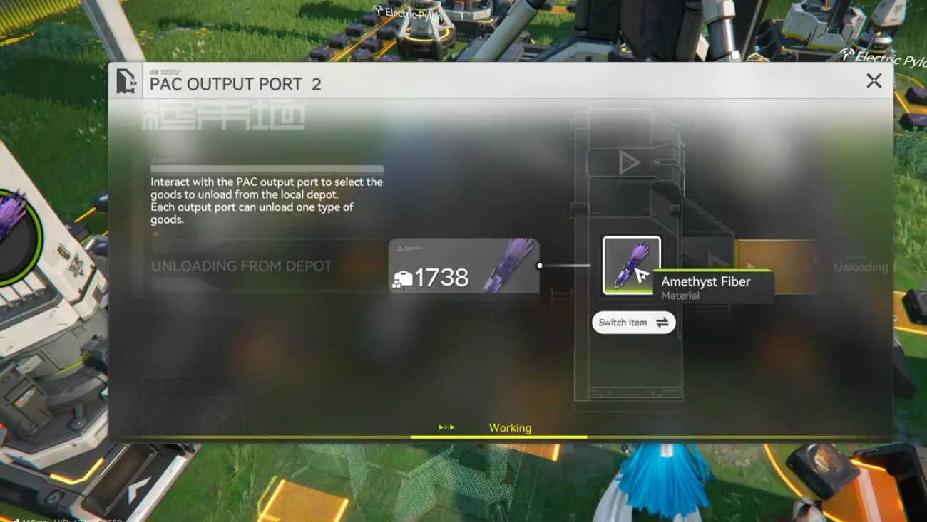 - 输入:紫水晶纤维(你应该有一个精炼机,用原始紫水晶矿石制造纤维)。