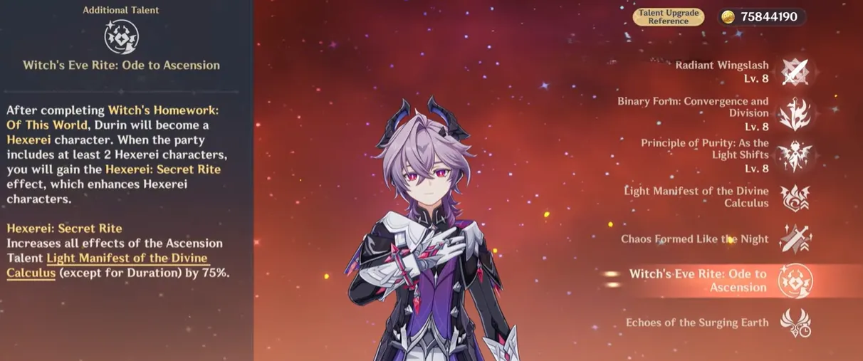 新版本引入了Hexerei:秘密仪式Buffs,Durin和Fischl都属于这一类别(这是之前的介绍文章,介绍了七个拥有Hexerei buff的角色以及他们如何工作:女巫角色增益),这意味着当两个Hexerei角色出现时,关键天赋将被激活。当你的队伍中有两名 Hexerei 角色时,各自角色的装备将对其战斗能力产生额外效果,并通常增强队伍的能力。