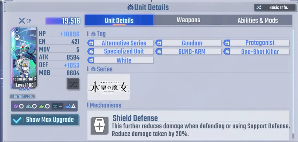 霸王狼的标签是“专业单位”。和“坚如钉子”。虽然不像“Ace”或“Psycho-frame”等标签那样通用,但它们对于构建特定的团队组成至关重要。