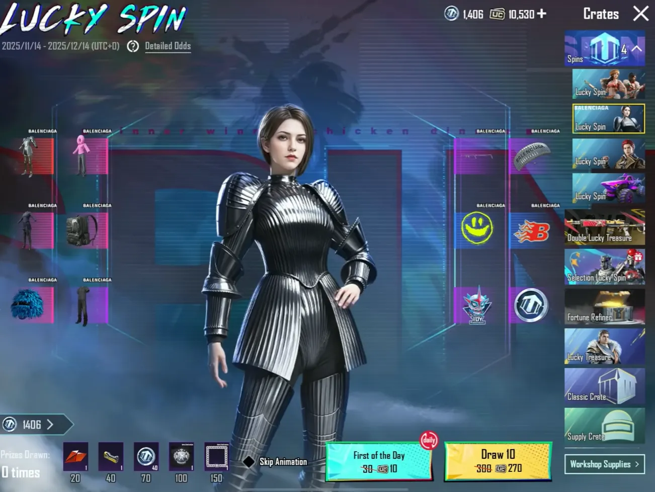 该活动的核心是幸运旋转:单次抽奖花费 30 UC(每天第一次抽奖只需 10 UC),10 次抽奖旋转花费 270 UC。幸运的玩家或顽固的收藏家通过 70 次旋转的每次抽奖、重复或里程碑保证赚取金币。这些硬币可以直接解锁物品: 600 个硬币即可获得时装盔甲套装,只需 300 个硬币即可获得人造毛皮头盔——确保魅力而不挫败。