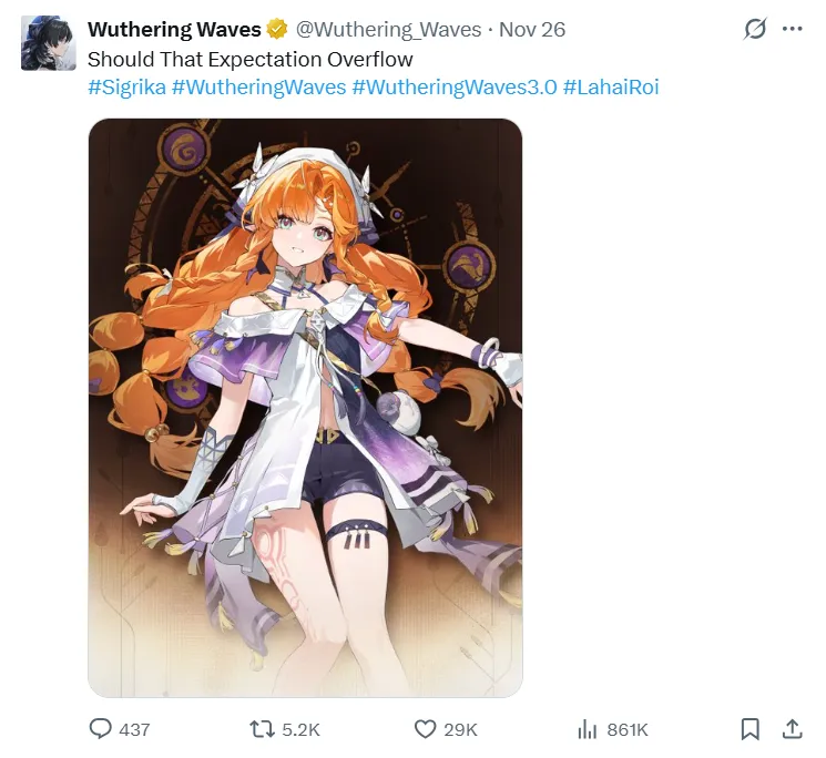 林亚科 无疑是 3.x 中的关注焦点 更新。她的街头涂鸦风格和酷炫潮流的设计立即吸引了玩家的兴趣。她在讨论量中处于领先地位,是目前最受期待的角色。