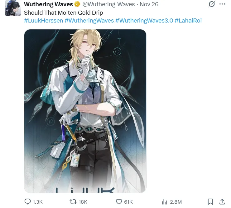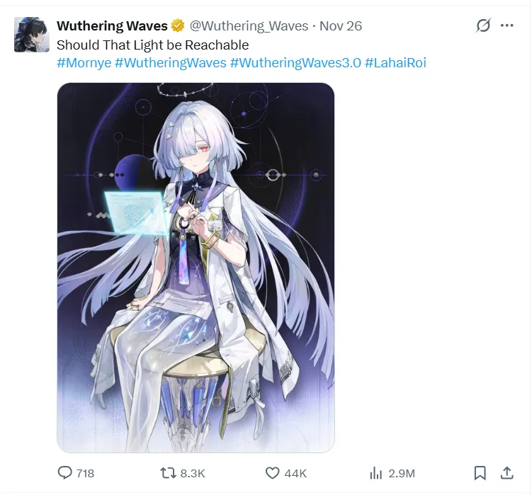 自从官方公布无娃3.x更新以及五位全新角色以来,短短几天内讨论度和人气就爆发了!关于关注度和玩家讨论的数据已经出现,并且 最突出的人物 毫不奇怪的是, 林亚科。