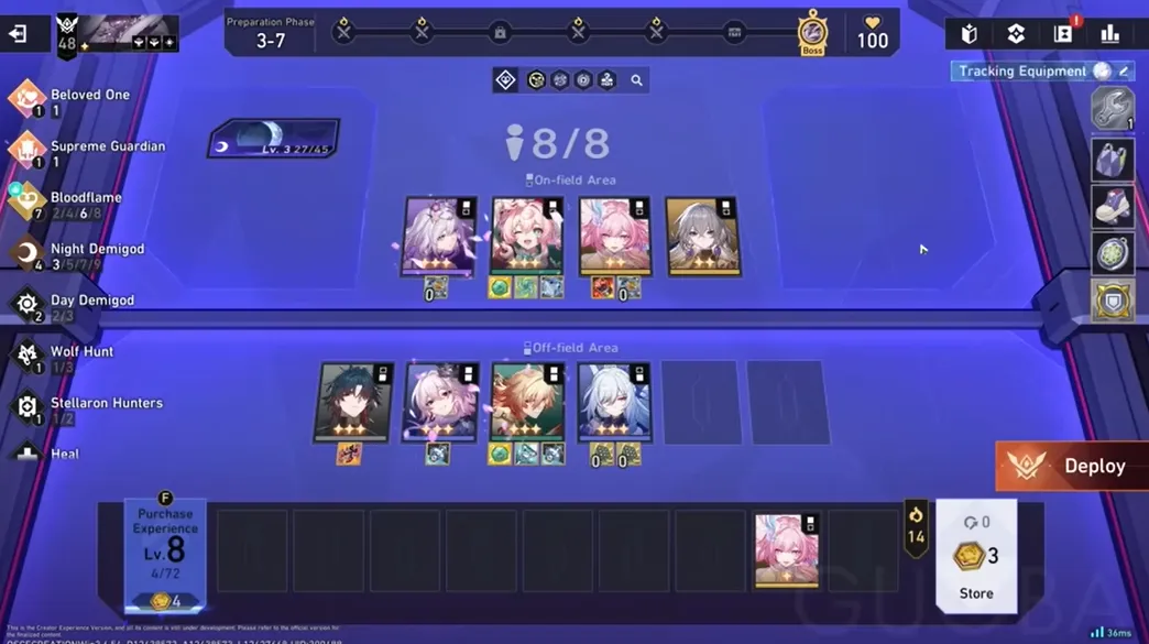 - 现场(4 个角色): 这些是你在战斗中直接控制的角色。将角色放置在指定的场上位置可以解锁主游戏中未见的新的或显着增强的能力(例如,萤火虫可以使用强大的老板动作)。