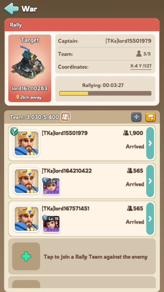 当你发起集结时,你的联盟成员可以派遣他们的部队和英雄。重要的部分是 第一个老虎机英雄 每个成员的。该英雄被视为木匠英雄。