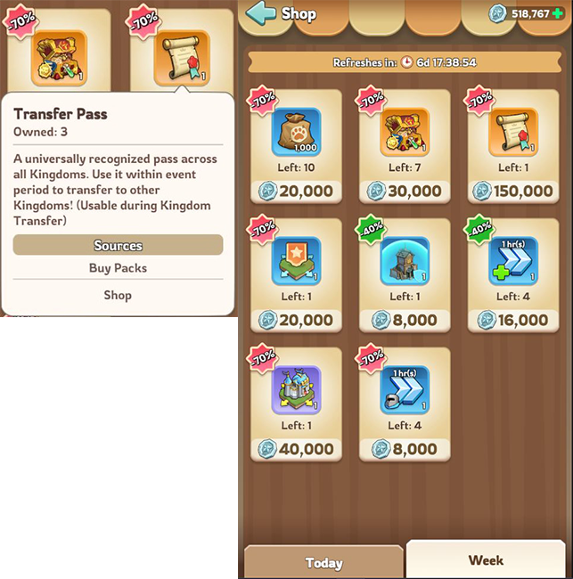 当联盟商店中出现转移通行证时,您的王国将有资格进行转移。这些转移通行证以卷轴的形式出现,花费 150,000 联盟代币。