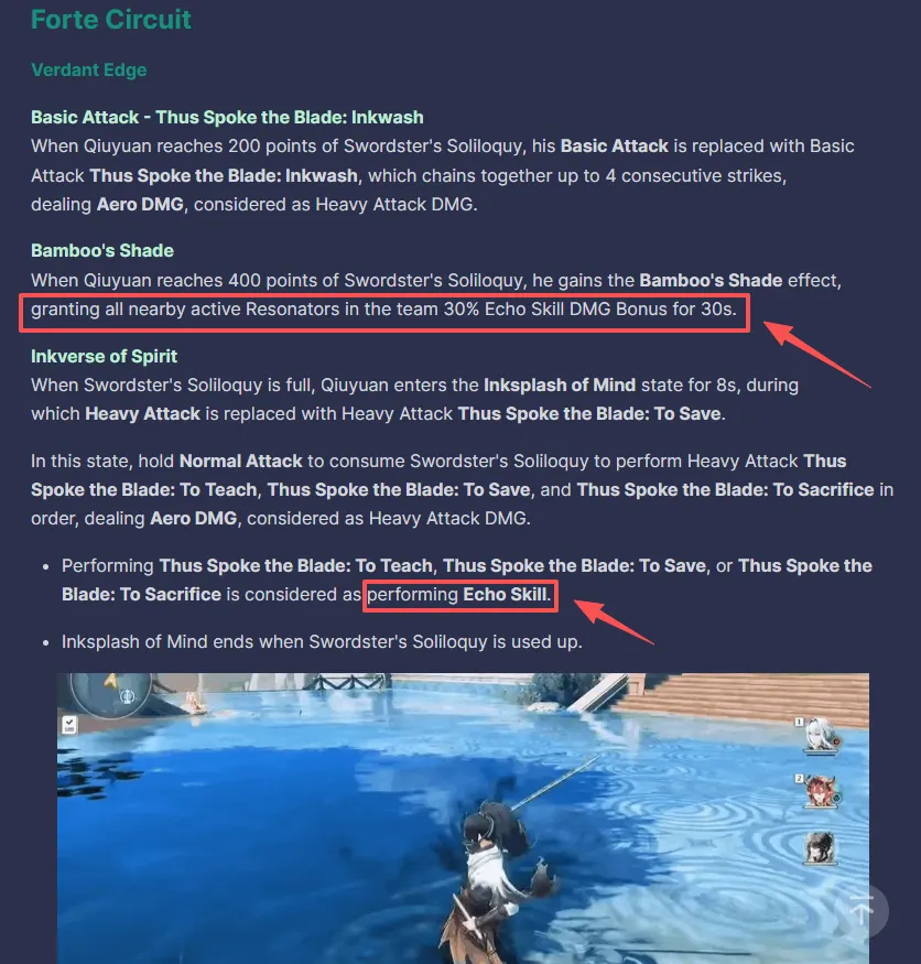 Qiuyuan是一名辅助副DPS,擅长 提升回响技能DMG。他的核心机制通过叠加触发“剑客独白”→“竹影”,为活跃盟友提供显着的共振技能伤害加成,并大幅增强团队爆发潜力。虽然他可以通过航空剑攻击造成不错的低 DPS, 他真正的价值在于放大队友的回响技能输出。依赖共鸣技能的团队从他身上受益匪浅,使秋缘成为注重团队效用的五星级单位。
