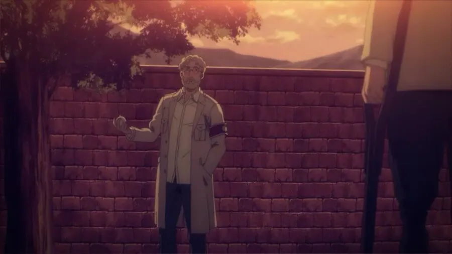 接下来,Eren 与 Zeke 交谈,而 Eren 在 Marley 医院扮演一名病人。 泽克告诉他,虽然研究表明阿克曼的能力会在他们的生存本能被触发时显现出来,但他很确定没有……