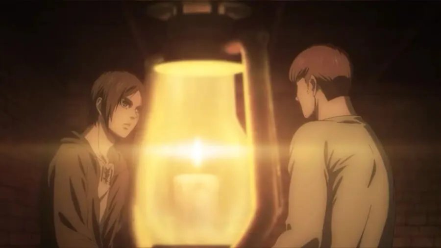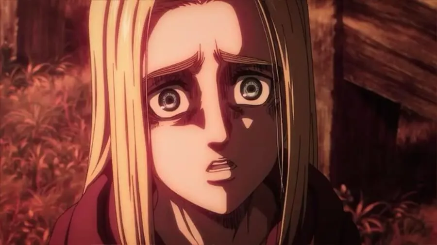 Eren 告诉 Floch 似乎同意该计划,然后告诉 Historia 军方计划将她变成泰坦并将 Zeke 喂给她。 他说唯一的选择是战斗或逃跑。 Historia 告诉他任何确保岛屿及其人民安全的计划,她都会执行该计划。 她感谢他“当时”为她挺身而出,并说这已经足够了,但他说这对他来说还不够好。
