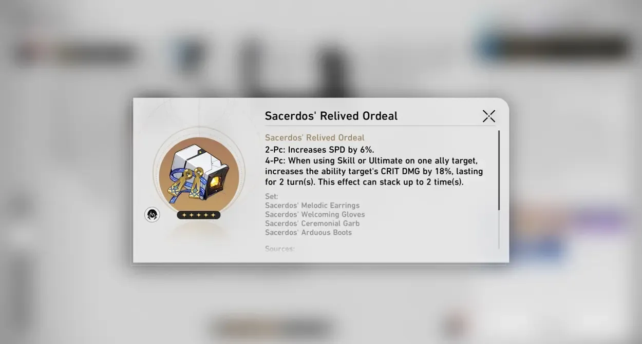最佳遗物套装:Sacerdos 重温的磨难(4 件)
