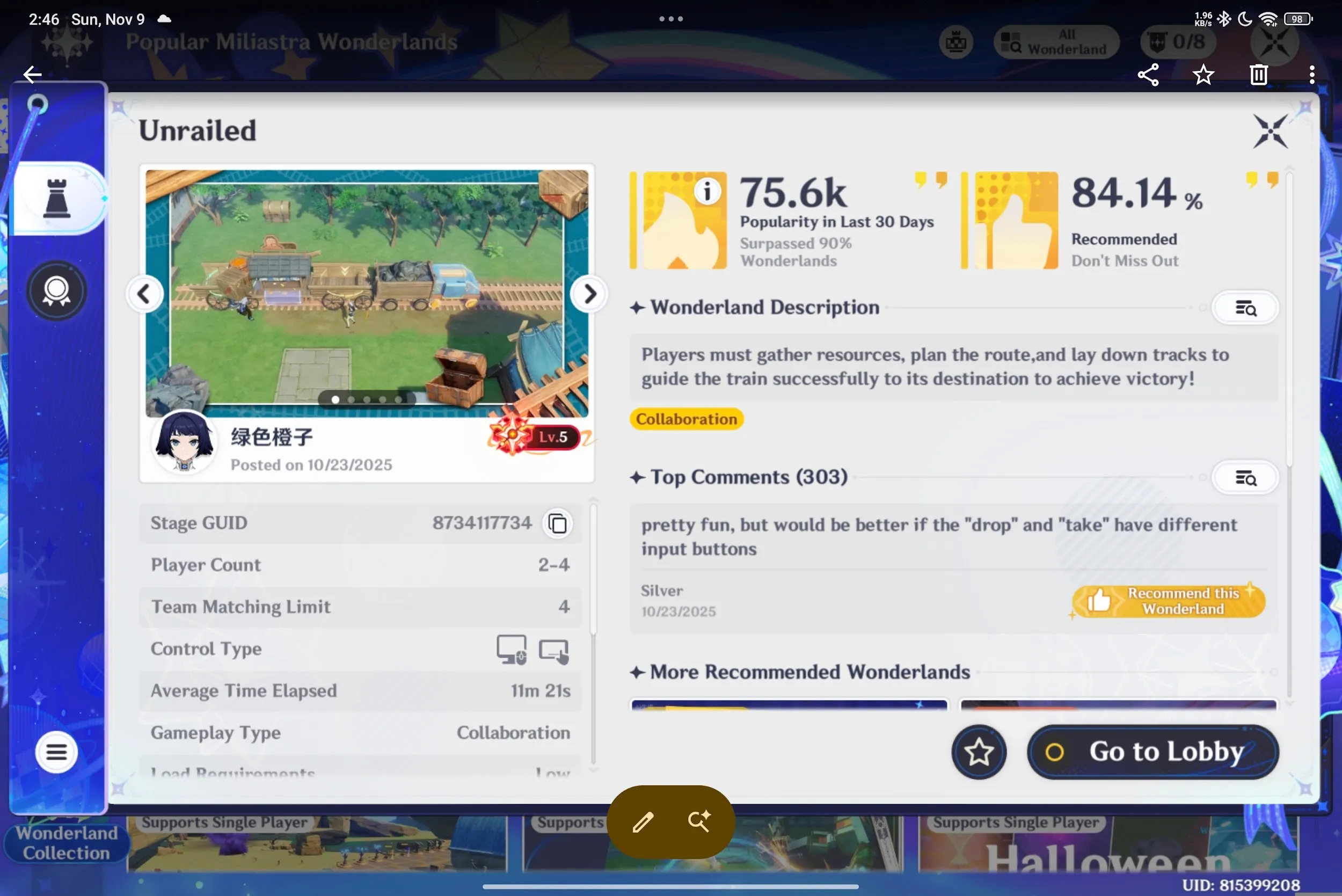 前面说过,这个模式有点像ROBLOX,把UGC推广给其他玩家,可以体验不同类型的游戏模式等等。因此,如果您打算深入 Miliastra Wonderland 的世界,请考虑以下地图作为您的初步体验: