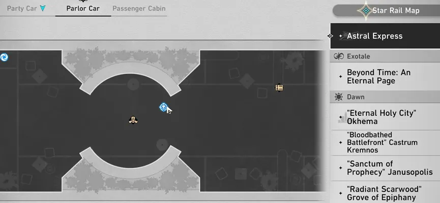返回 开拓者的房间中的一个子区域 派对车 登上 星界快车。 |