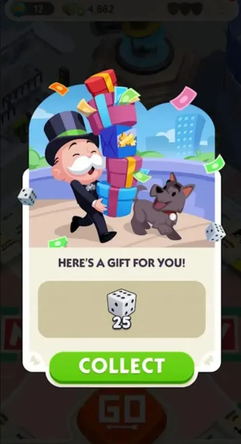 • 第4步: 屏幕上会出现一个弹出窗口,显示“这是给您的礼物!”。单击收集按钮并享受免费掷骰子的乐趣