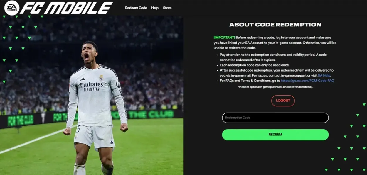 - 前往 FC 26 的官方兑换网站,即redeem.fcm.ea.com。