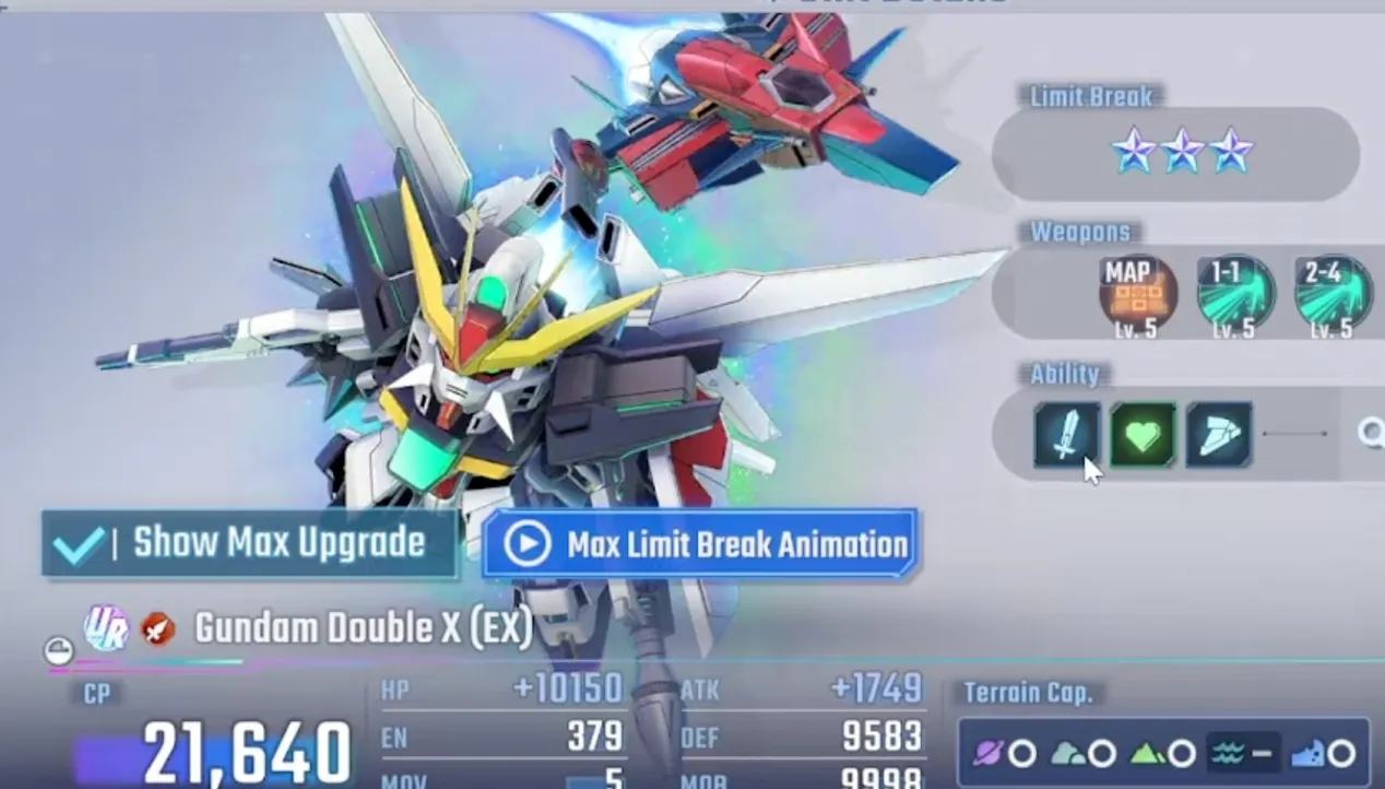 - 革命性技能: “零EN/弹药LV 3”技能是游戏中第一个既不消耗EN也不消耗MAP弹药的技能。这意味着Double X可以在一场战斗中免费发射两次MAP武器,或者其他单位(如Strike Freedom Meteor、GP02)可以实现MAP武器垃圾邮件,使其PVE清除价值巨大。