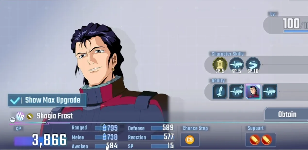 - 完美的支持技能包: 他的技能包括 EN消耗减少, 远程统计提升,以及珍贵的 摇摆(闪避)。被动技能为“支援时攻击力增加20%”和“远程和近战增加20%”。这使得他既能够造成伤害,又能够生存,以进攻和防守相结合的辅助角色。