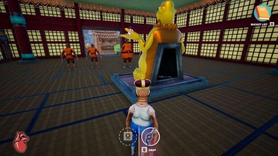 有一个完整的社区,人们四处走动,执行任务和工作。 他们中的大多数人都很平静,但如果你靠近,有些角色会被激怒。 你可以逃跑,但他们很可能会严重伤害或杀死你。 如果你想避免他们攻击,你需要一顶禅师帽,你可以从前院锣附近的女和尚那里得到。