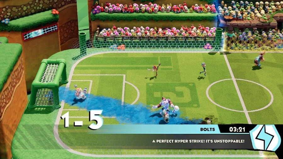 在 Mario Strikers: Battle League 中,您可以实现完美的传球、射门和铲球。 对这些的好处是他们的 准确性和力量将增加. 完美的铲球还可以帮助低强度角色从像鲍泽或大金刚这样的高强度角色手中夺取球权。