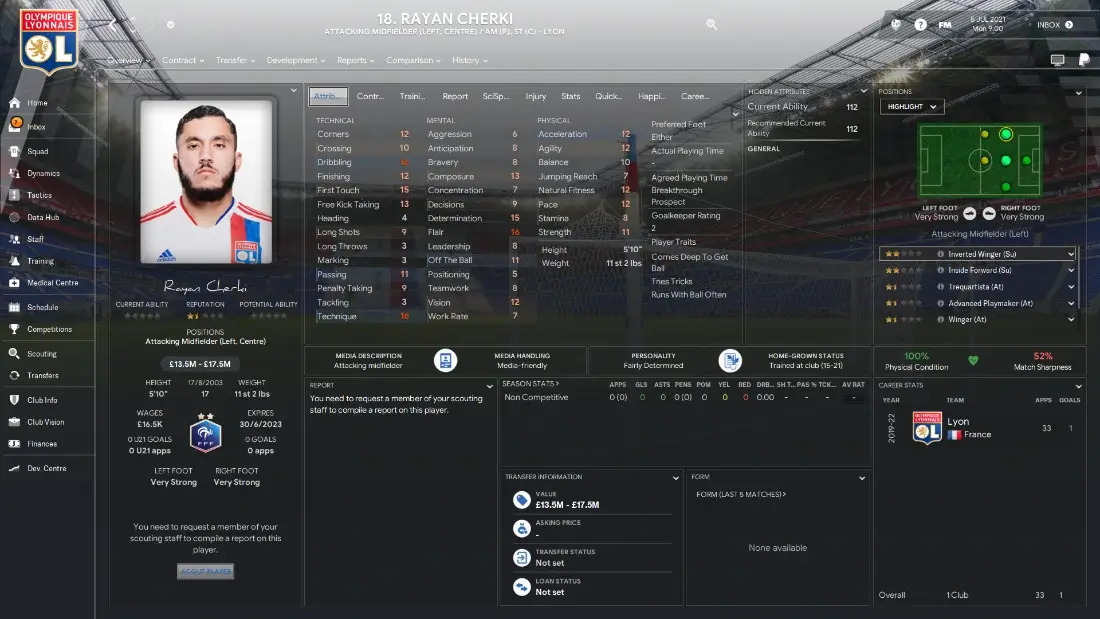 17 岁的里昂奥林匹克学院毕业生 Rayan Cherki 可能会因为他的 163 PA 而成为未来几年的热门资产,但如果他要从 112 CA 发展起来,他将需要一些培养。