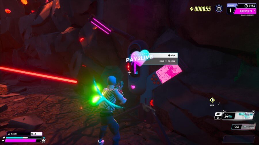 你想建立尽可能多的学分的主要原因是 在你的跑步过程中愈合. 在 Pay2Live 站(如图),您可以 每给予的信用点数可以治愈十点生命值. 治愈所需的银币数量会随着难度的增加而增加,您必须在车站持有 Square 才能获得生命值。 每个脉冲将授予十个健康,同时减去必要数量的信用。 尤其是当您蜂拥而至时,知道这些站点的位置将被证明是至关重要的——如果您有足够的学分来拯救自己。
