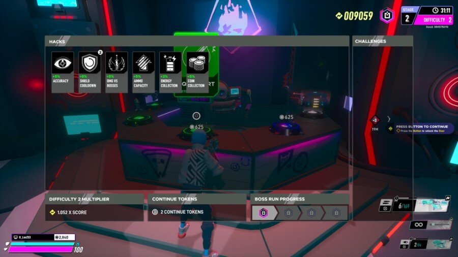您可以通过以下方式查看您的 hack 按住触摸板调出运行信息屏幕. 您还将在屏幕上看到 Boss Run 进度(更多内容见下文)以及您拥有的持续数量等等。 在进入 Boss 战之前找到尽可能多的 hack 将大大提高您击败每个 Boss 的机会,因此探索并解锁您找到的每个箱子。