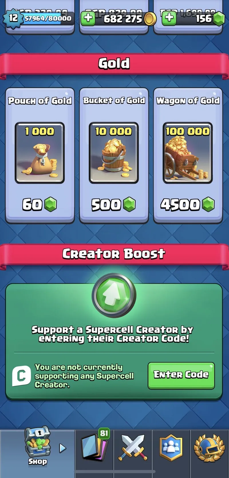 • 如果您当前不支持任何 Supercell Creator,您将看到“输入代码”按钮。