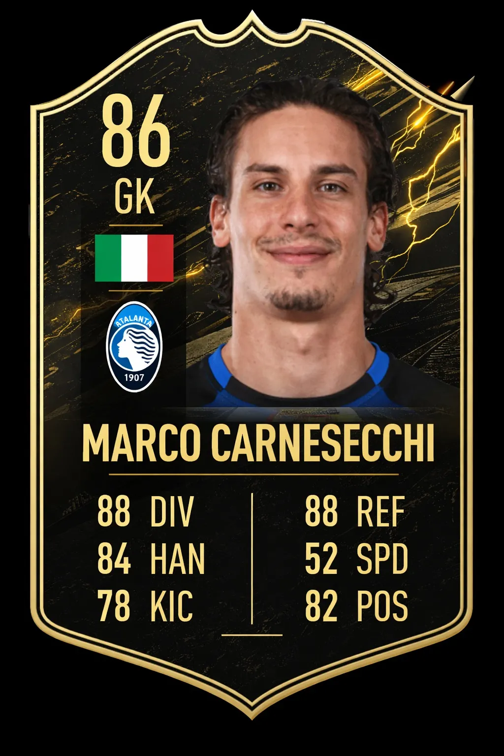 - 门将:Marco Carnesecchi(亚特兰大) – 84(真实评分)→ 86(TOTW 评分)