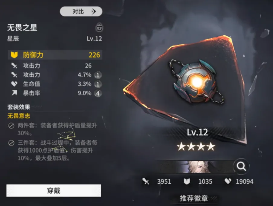 推荐装备:勇星盾套装,大幅提升生存能力,前期耐久度极高。