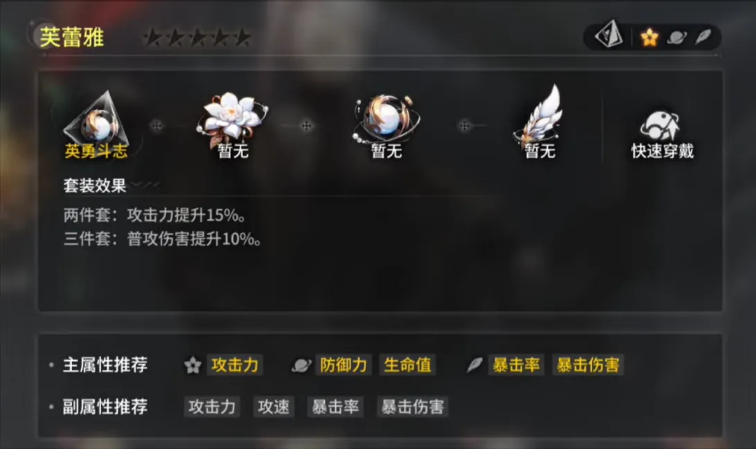 推荐装备:探路者的绽放套装,与她的技能协同效果最好。