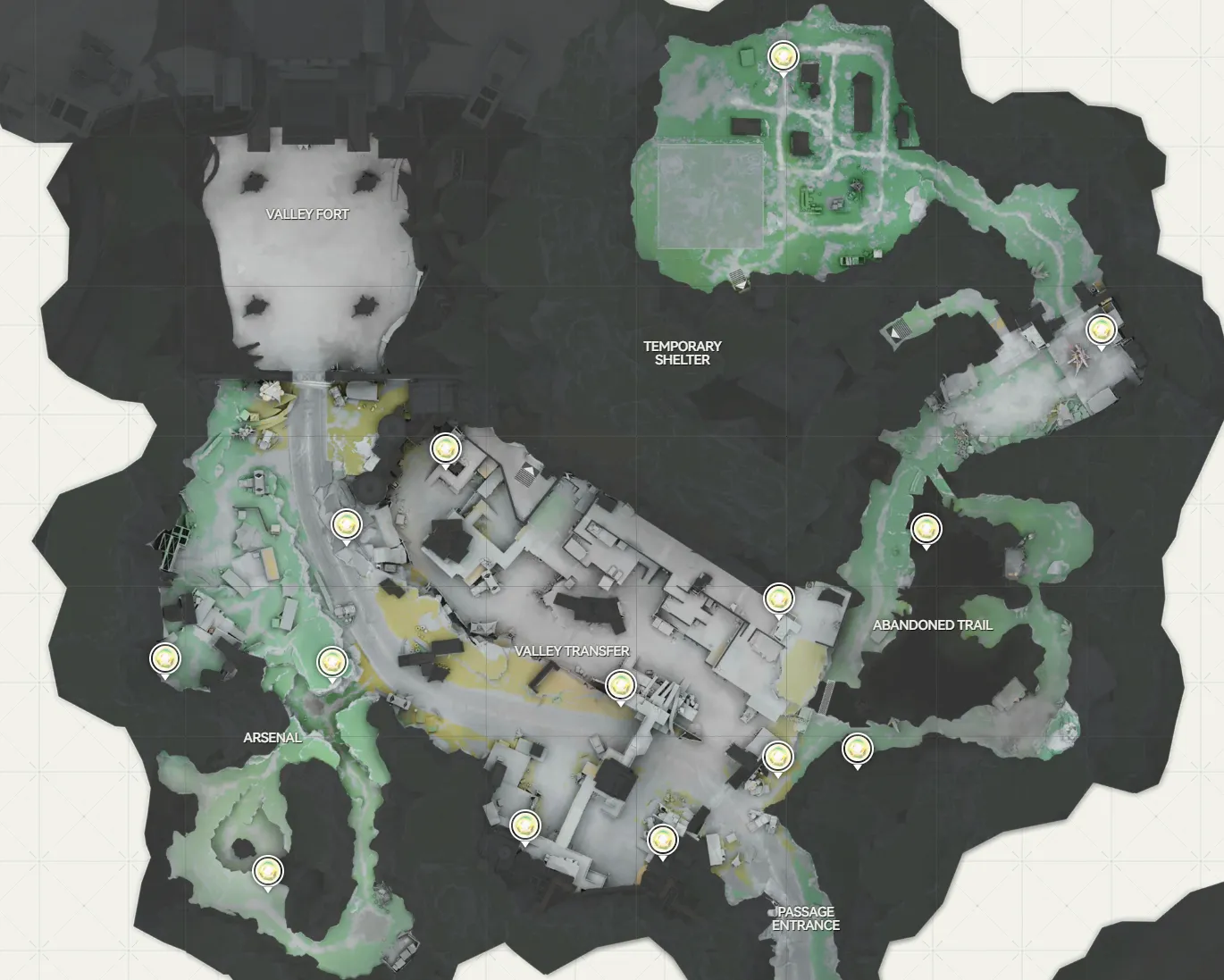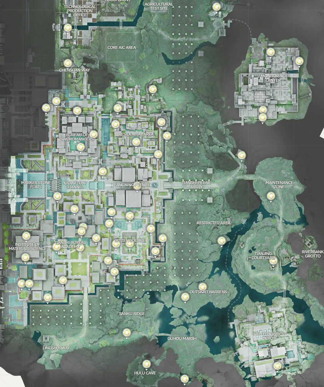 枢纽→山谷隘口→阿伯里采石场→源石科技园→源泉→动力高原→靖宇谷→武陵城