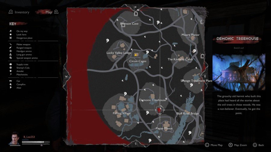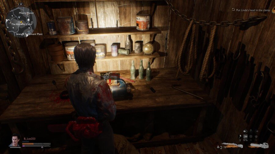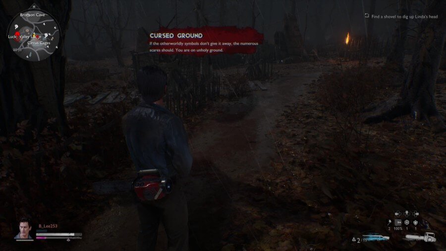 当你开始任务时,你会看到一个屏幕,上面写着:“当你的爱被恶魔占据时,斩首并埋葬她是结束你痛苦的最快方法。 至少你是这么告诉自己的,但琳达的哭声仍然困扰着你。” 然后,您的任务是在布朗森洞穴中寻找艾什·威廉姆斯送给她的项链。