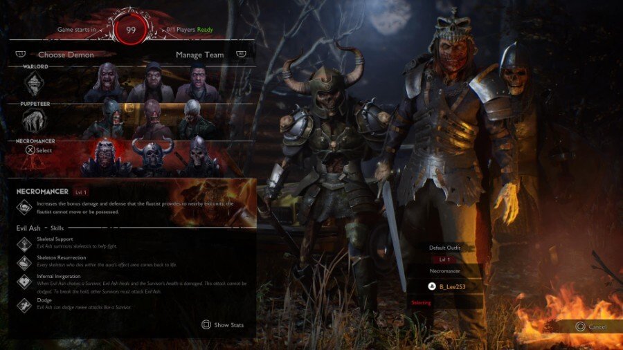 Evil Dead The Game 目前有九个可玩的恶魔,就像他们的人类敌人一样。 该列表按照上面的顺序,死灵法师第一,木偶师第二,军阀第三。