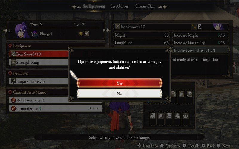 优化功能会自动为您的单位选择最好的装备、营、战斗艺术、魔法和能力。 根据您当前拥有的设备、技能和物品以及最适合所选班级的内容,有许多不同的变体和选项可供选择。
