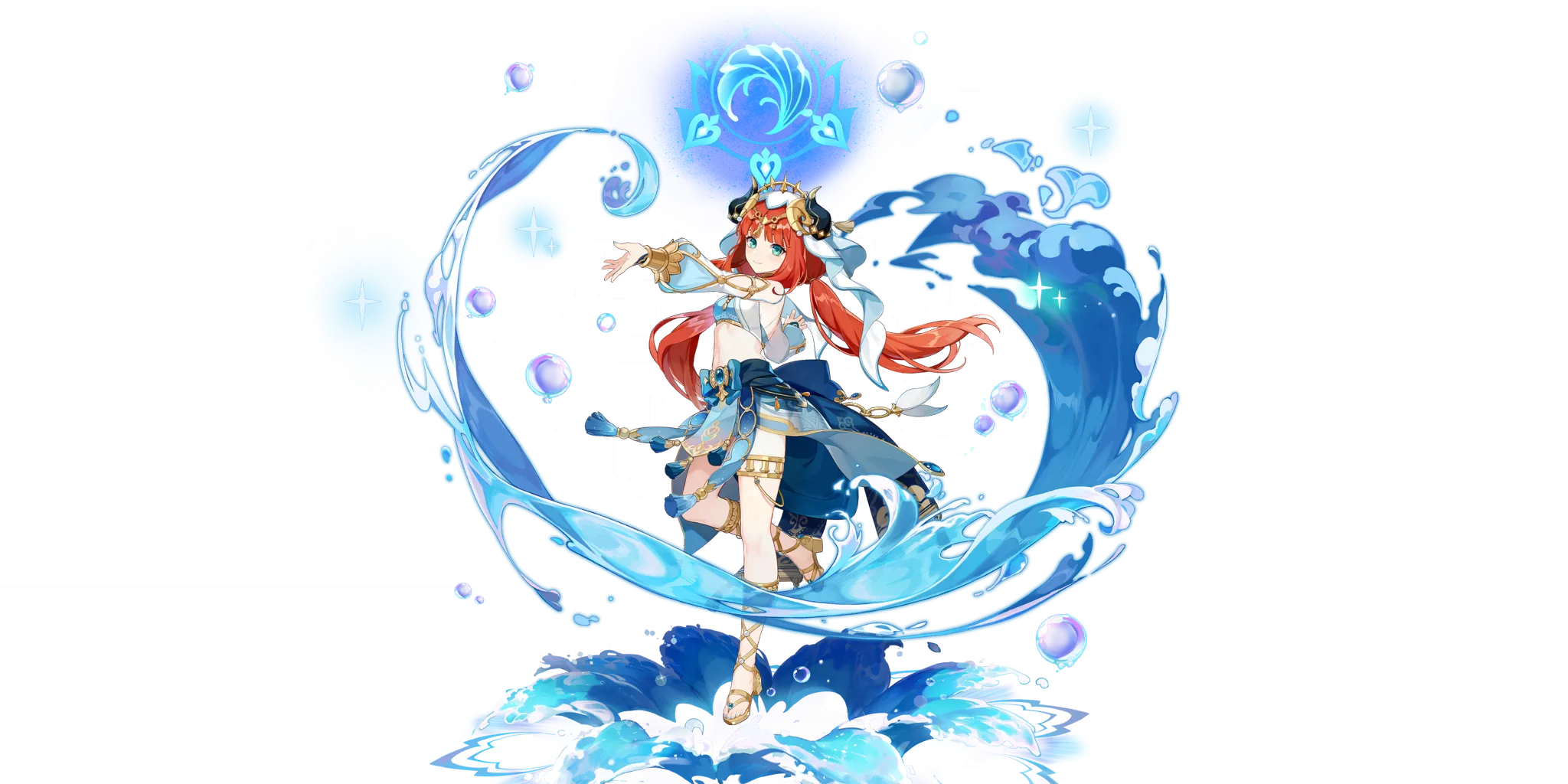 Nilou 是来自须弥地区的水元素有限 5 星角色。她挥舞着一把剑作为她的主要武器,专门为绽放元素反应团队提供支持,为团队提供场外的水光光环,可以创建特殊的丰盛核心,这些核心可以比普通丹卓核心更早爆炸,并对敌人造成比普通丹卓核心更多的丹卓元素伤害。