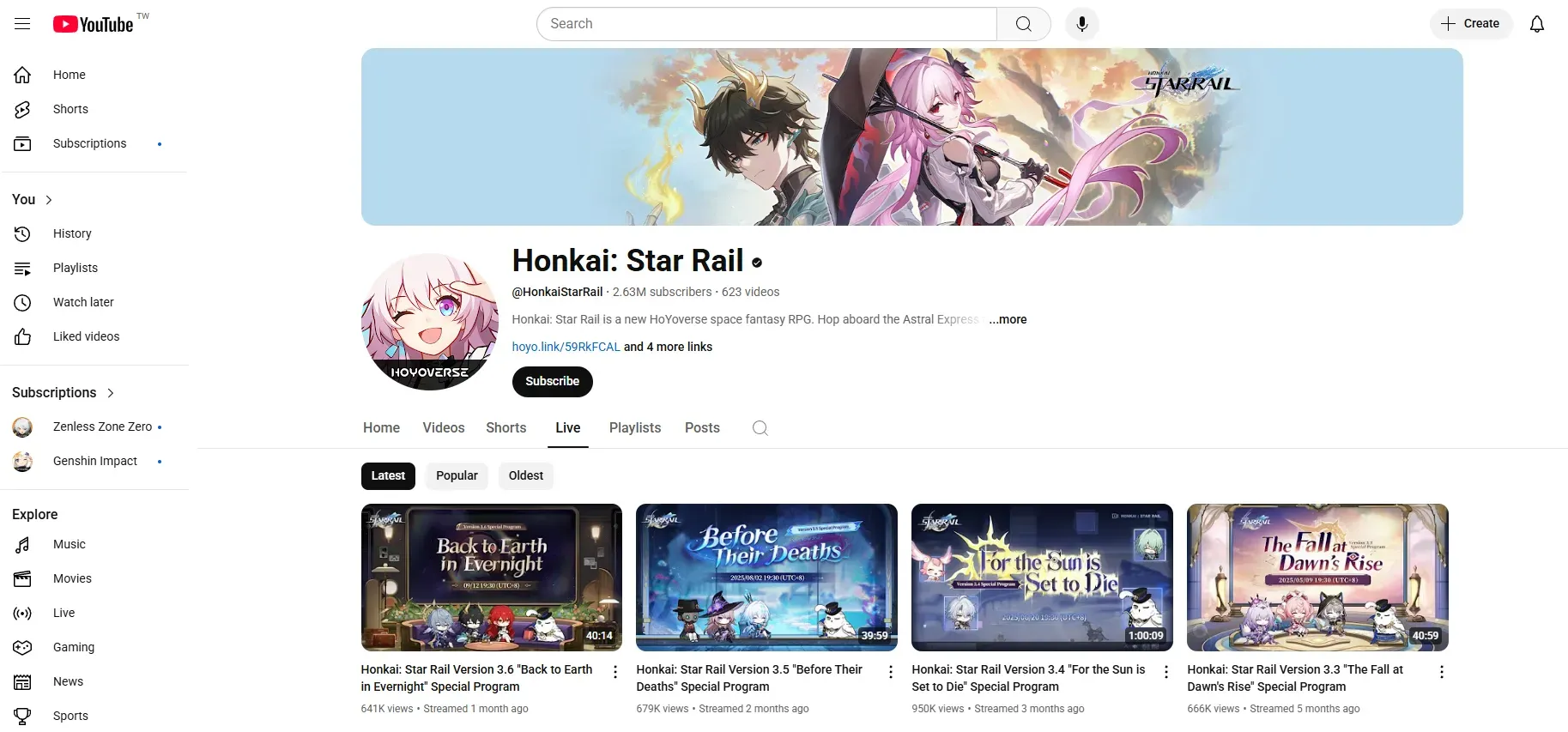 您可以在 HSR Youtube 官方频道观看 3.8 直播。