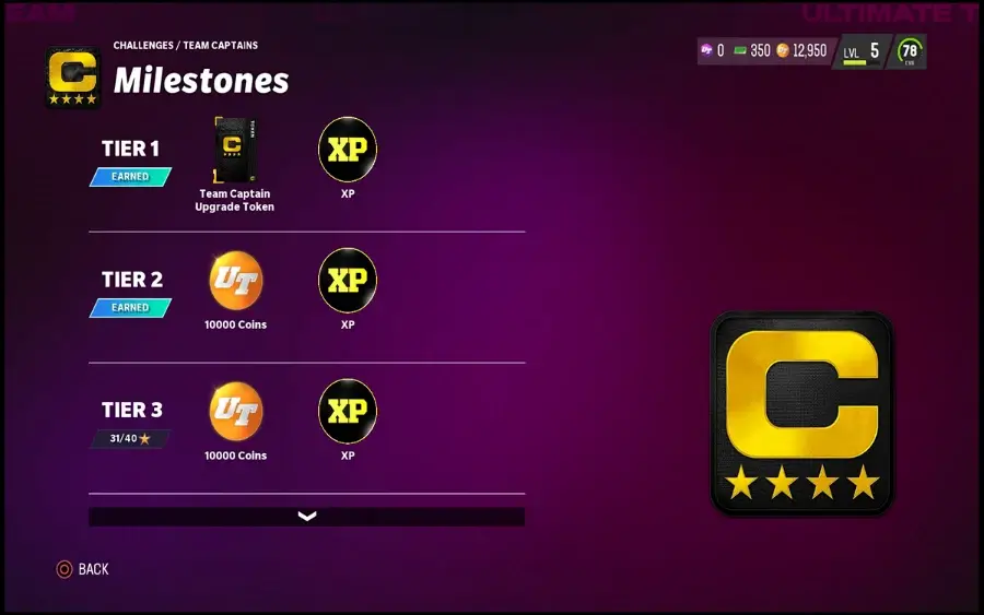 所有队长一开始的总评分为 85。升级需要训练点数和升级代币。 通过完成队长挑战并达到第 4 层,您将获得两个升级代币。通过完成单人挑战和快速销售您名册上的球员,您将获得训练积分。 所有队长的最高评分为 99 OVR。 您还可以根据您的花名册需求变化更换队长。 移除当前队长的升级代币并使用队长交换来获得队长幻想包,并从其他四名可用球员中选择一名。