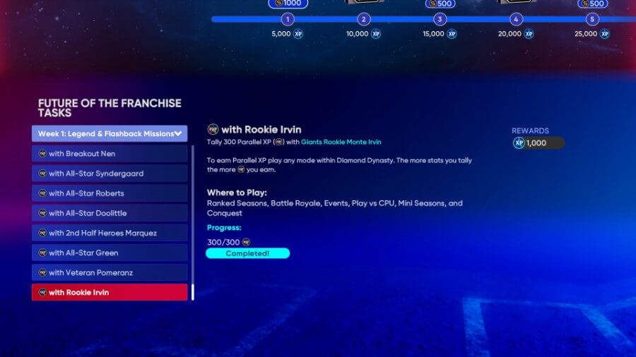 您获得 XP 所获得的一些奖励不会是程序的“老板”牌,而是其他闪回和传奇牌。 有 另外 30 个这样的卡片和任务,您可以收集所有这些卡片和任务. 这些任务很简单: 获得与玩家平行的经验. 您可以通过与阵容、轮换和牛棚中的这些球员一起玩游戏来获得平行经验。