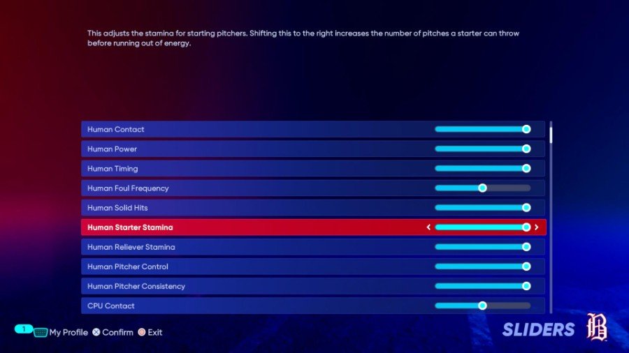 尤其是在不玩钻石王朝的CPU时,只是在展览游戏中, 最大限度地利用您的滑块进行投球、击球和防守. 这应该意味着您在进攻中获得了许多安打、奔跑和本垒打,而在防守端则缺乏安打和奔跑。