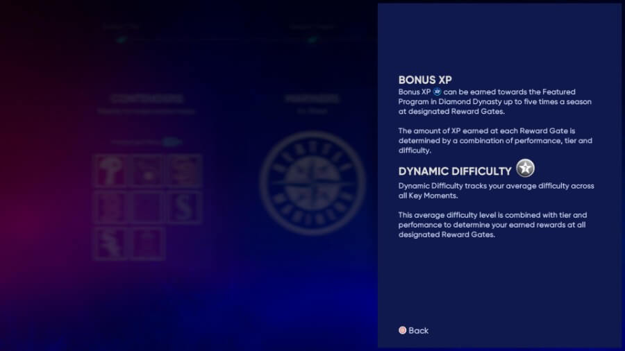 当您选择您的团队时,您将获得 MtO 的难度选项。 建议从初学者到 Rookie 玩最简单、最快捷的获得 XP 的途径。 但是,图中的通知表明您将从主程序中获得的 XP 数量是 取决于您选择的难度. 难度越高,您在赛季和季后标记中获得的 XP 就越多。