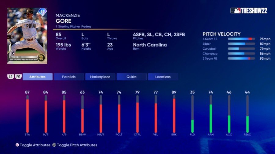 完成这六个时刻后,您将解锁三张新的 Tops Now 卡片——前提是您也完成了前两周。 所有三张牌都是 85 个 OVR 投手(两个首发,一个重发)。 首先是麦肯齐·戈尔,他在圣地亚哥赢得了职业生涯的第一个开始。 戈尔是值得注意的,因为他有一个独特的投球交付。 左撇子可能会走几个击球手,但周围都很稳固。
