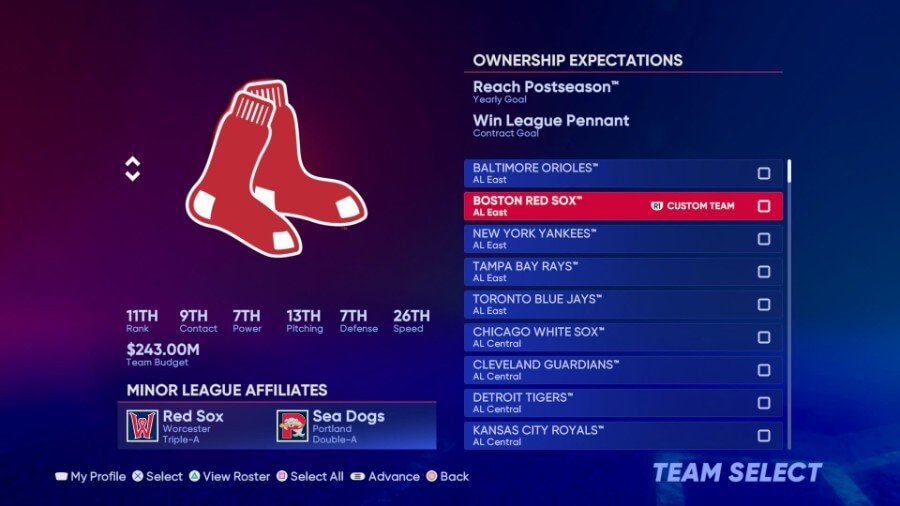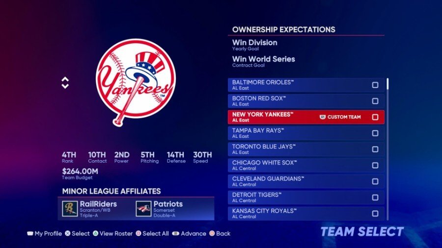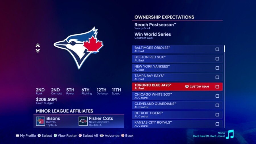 由于他们的年轻、技术和个性,可以说是棒球界最令人兴奋的球队,多伦多是一支由前大联盟球员的儿子或职业棒球运动员的儿子 Vladimir Gurrero, Jr. (96 OVR)、Bo Bichette ( 87 OVR) 和 Lourdes Gurriel, Jr, (87 OVR) 以及 Cavan Biggio (75 OVR) 成为第二代球员。 交易马特查普曼(87 OVR)将更有利于防守而不是进攻,尽管他确实提供了一些力量。 George Springer(83 OVR)完善了以登月本垒打而闻名的强大阵容。