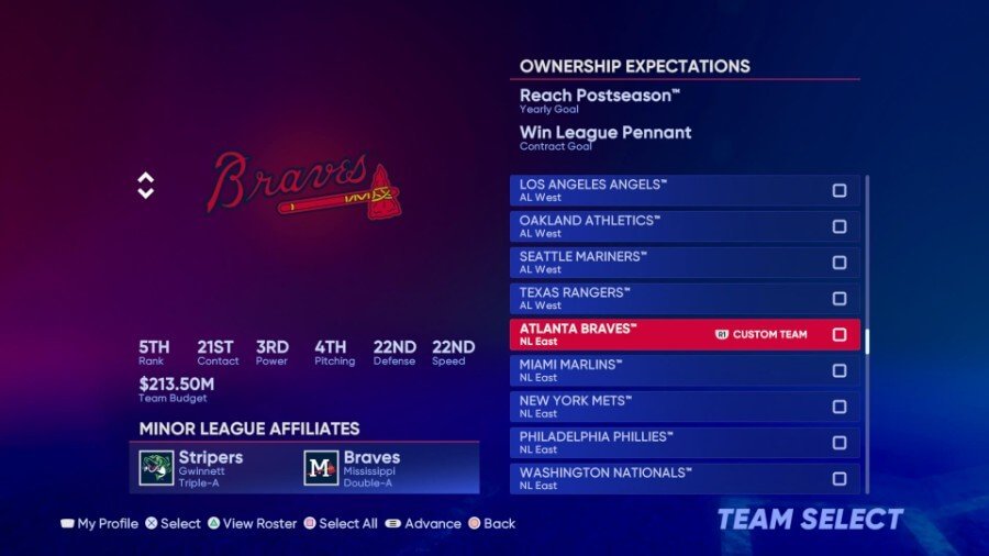 亚特兰大实际上以 12 分的命中率与科罗拉多队并列,但有一个重要因素对亚特兰大有利:小罗纳德·阿库尼亚 (Ronald Acuña, Jr.)(99 OVR)早于 2021 年 7 月因 ACL 撕裂而恢复。你也可以把他调到 MLB 的名单上去打亚特兰大……