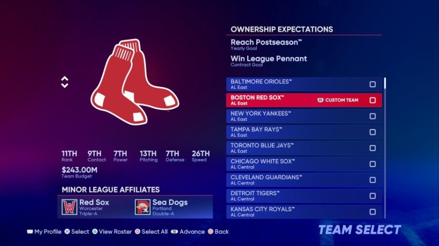 球队的命中率和投球率排名第二,这似乎是不公平的。 不用担心,因为他们也是 MLB The Show 22 中最快的球队之一,所以这很复杂!