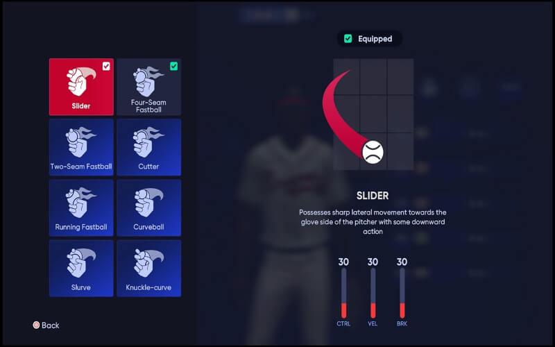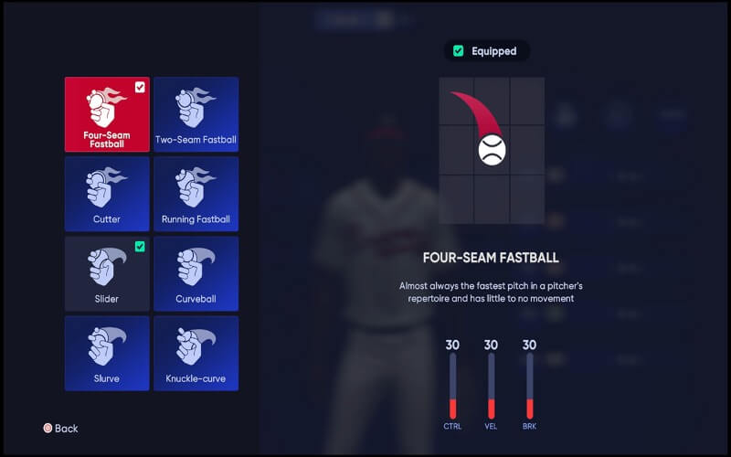 在您的 Perks 之后,您的音高曲目是您构建中最重要的因素。 MLB The Show 22 让您可以为您的球员选择投球类型。 您最多可以选择五个不同的音高,但至少需要三个。 您选择的投球应该反映球员的投球原型。 快球的不同变化将最有利于速度原型,以及可以高速投掷的偏离速度和破球。 有一个曲线球和/或改变你的快球将有助于防止击球手进入节奏