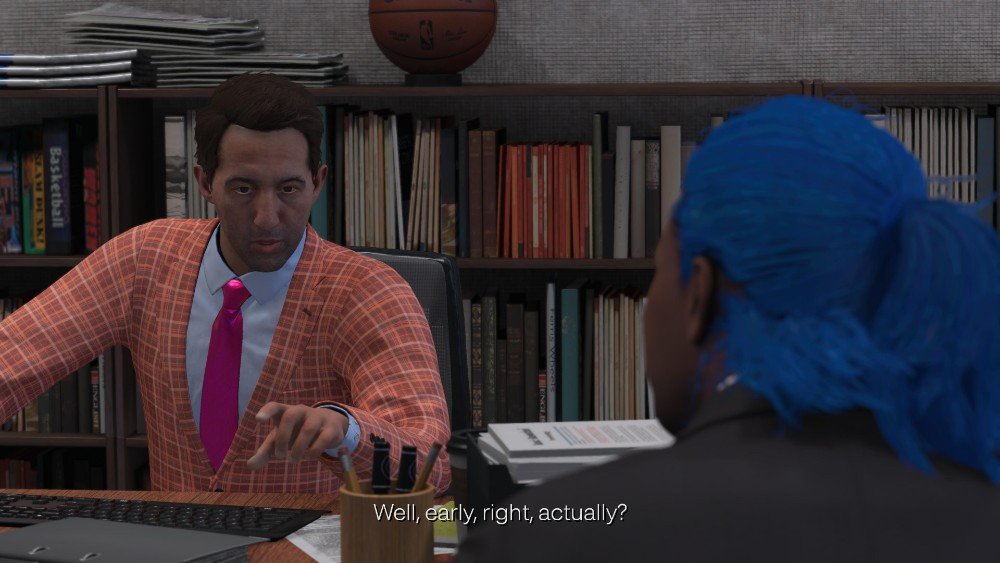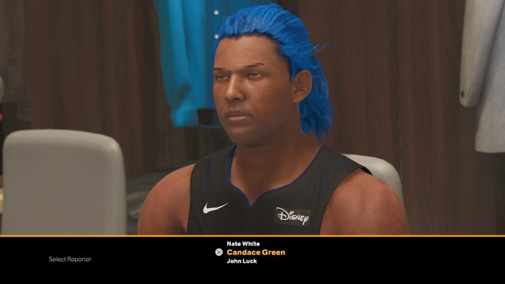 约翰·拉克是三位记者的“准入商人”。 他会以最少的反对机会向您提出最简单的问题。 为了使用更多的俚语,他会问垒球问题,这些问题看起来并不像按钮或获得情绪反应(他甚至在游戏内的社交媒体上被嘲笑)。 运气也是这样的人,在选秀之夜的惨败之后,您的管理团队(2K23 中没有更多的代理商!)将安排一次静坐采访,以获得更多粉丝的支持。 如果你挣扎或你的球队输掉了比赛,运气可能是你最好的选择。