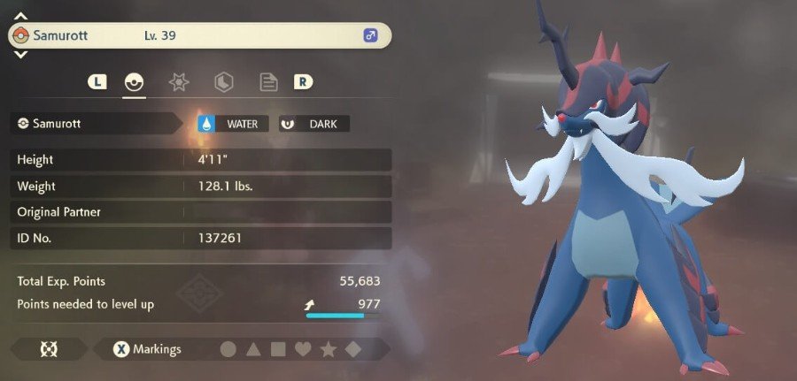 与其未来的 Unovan 形式不同,Hisuian Samurott 是一个 水属性和暗属性宝可梦. Hisuian Samurott 的 Base Stat Total 为 528。它是具有攻击性的口袋妖怪 攻击和特攻为 108,HP 为 90. 速度85,防御80,特防65,平衡性相当不错,也是非传奇暗系最强,在阿尔宙斯水系中排名第五。
